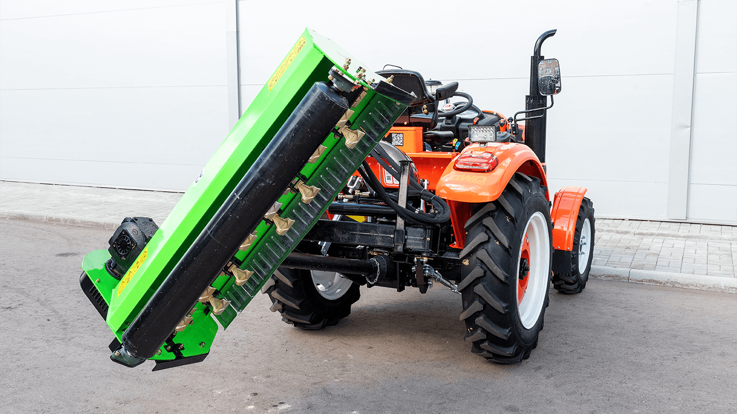 - Требуемая мощность трактора: От 35 л. с. + независимый ВОМ